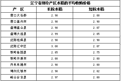 下表所示为辽宁省部分产区水稻的平均收购价格:单位(元/公斤)