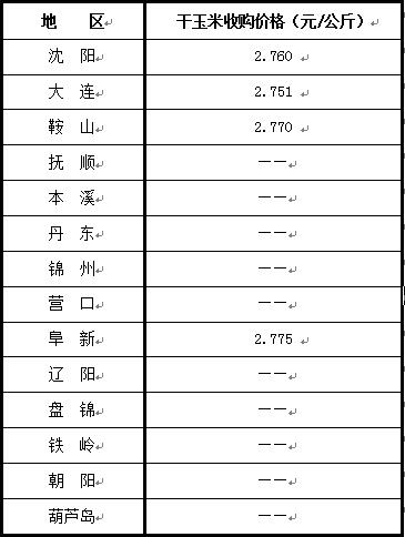 辽宁省各产地玉米收购均价如下: