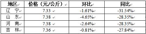 下表所示为辽宁省部分产区花生米一周平均收购价格:单位(元/公斤)