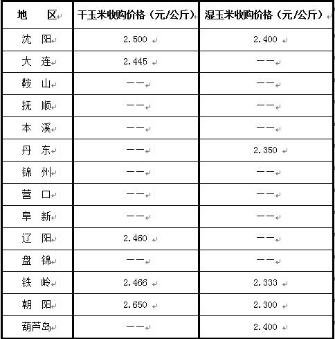 注:本文辽宁产地干玉米为含水量≤20%,湿玉米含水量>20%。