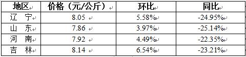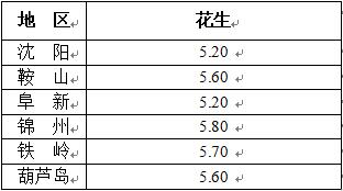 下表所示为辽宁省部分产区花生米一周平均收购价格:单位(元/公斤)